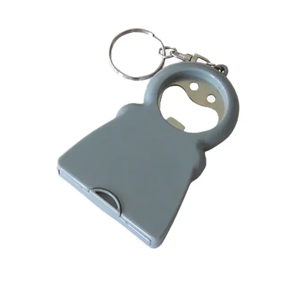 Descripción: Llavero Despatador con 3 Funciones, destapador, apertura frontal que lo trasforma en un soporte para celular e incluye insertada una almohadilla para limpieza del cristal del celular.