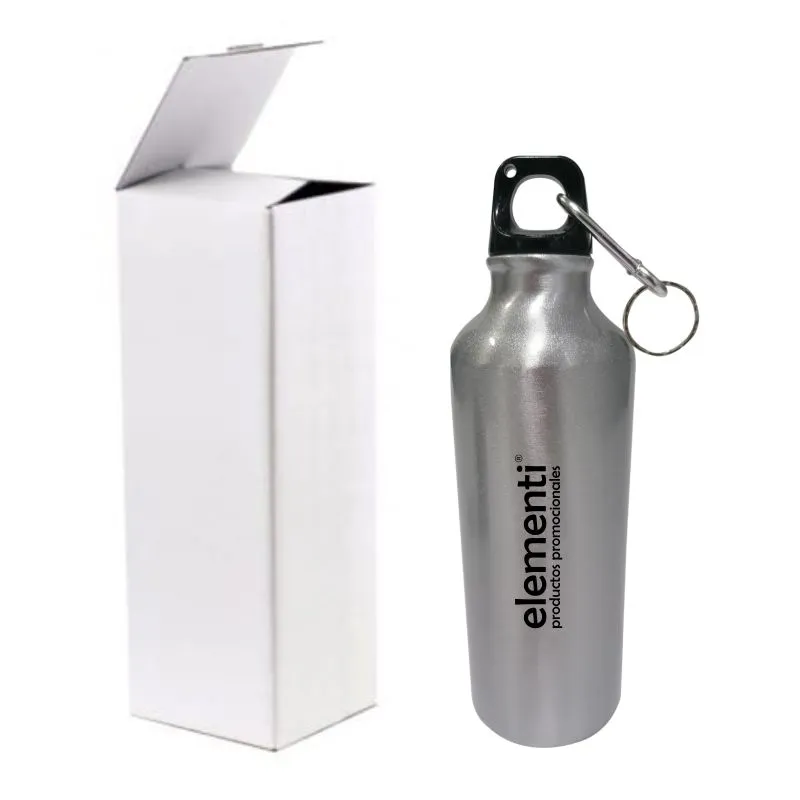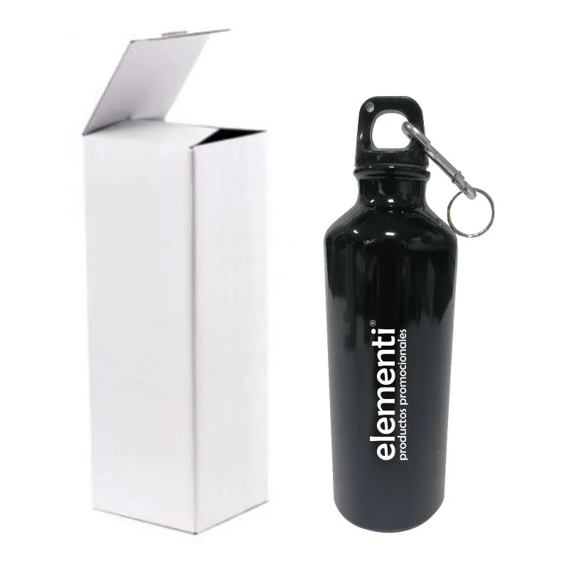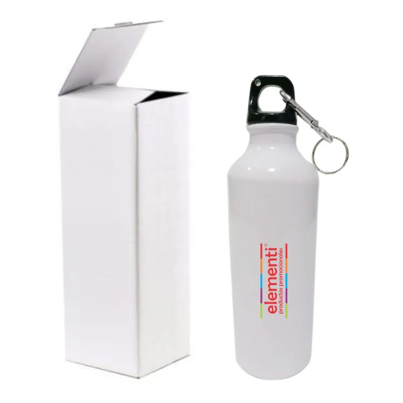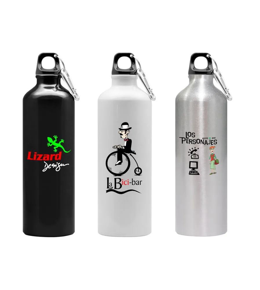 Posee una capacidad de 500ml o 750ml y tapa plástica a rosca y resulta ideal para actividades al aire libre. Se imprime con tintas UV y UV DTF.