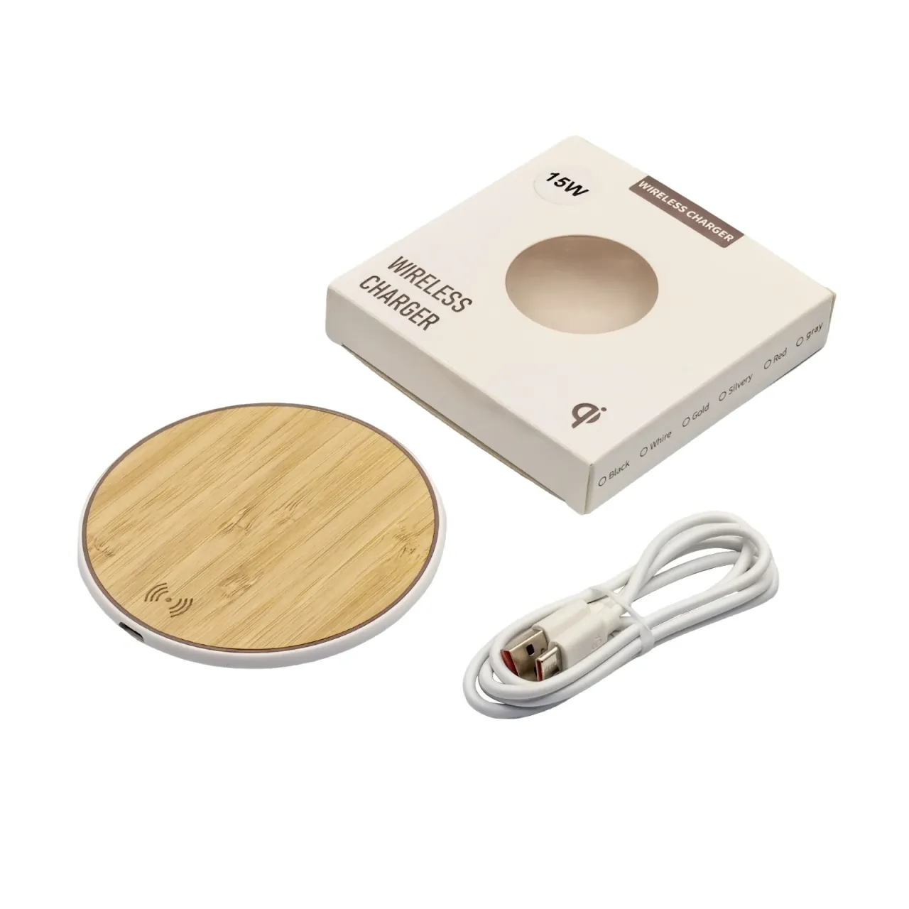 1 × Cargador inalámbrico de bambú 15 W