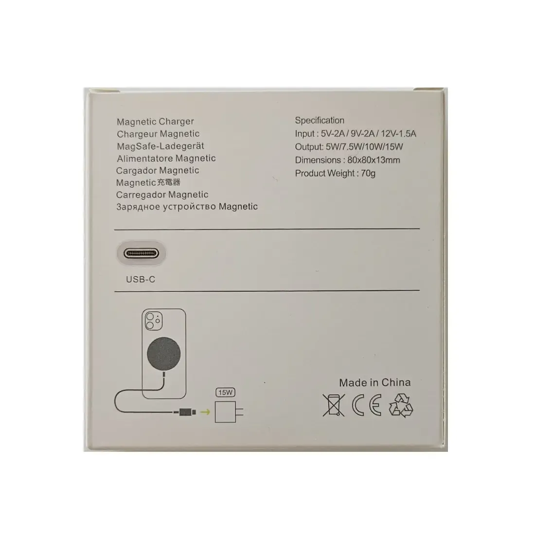 Cargador inalámbrico W500 con tecnología QI y compatibilidad MagSafe. Ofrece carga rápida de hasta 15W, diseño ultrafino y conexión USB-C. Elegante, liviano y compatible con todos los celulares con carga inalámbrica. Ideal para uso diario y portátil.