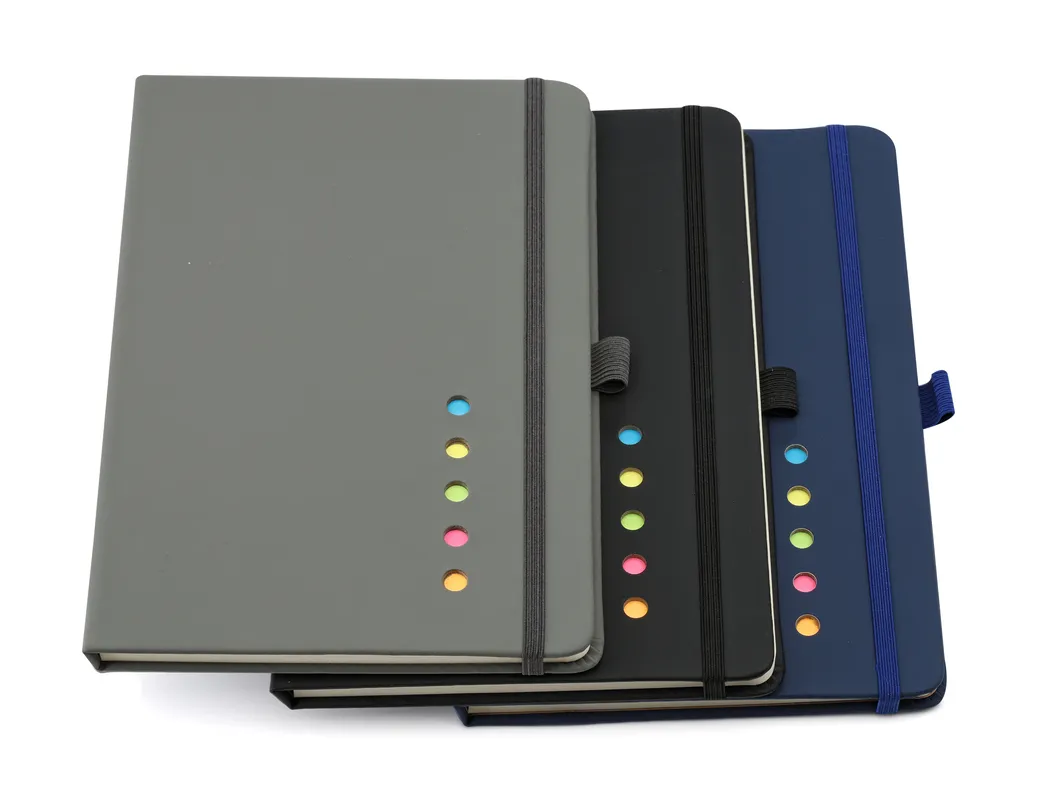 Con banda elástica de sujeción al tono y presilla porta bolígrafo de 15mm.