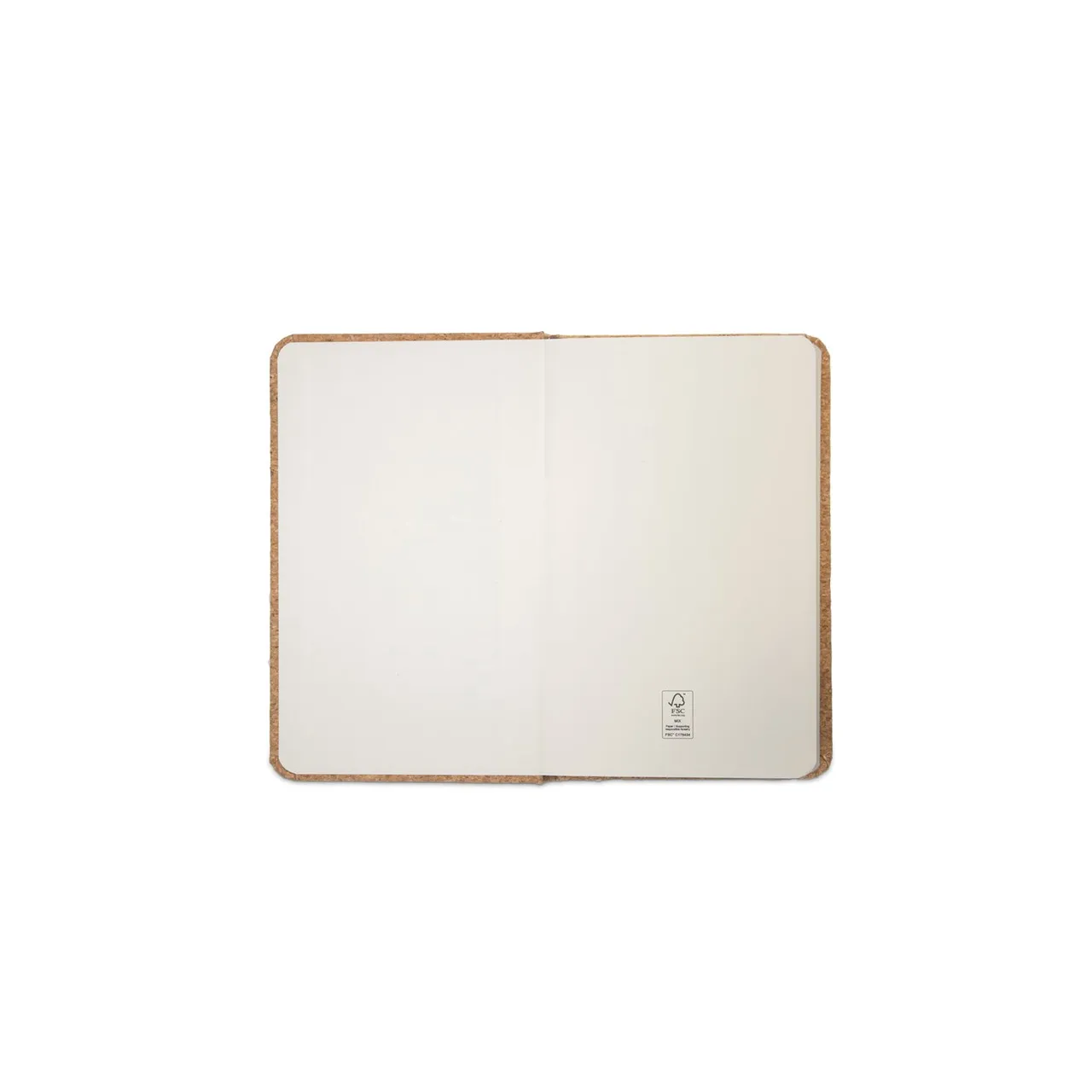 Fabricado con material certificado FSC™ y otros materiales controlados.. Material: Tapa dura corcho, hojas lisas. Tamaño: 90 x 142 mm. Área de impresión: 70 x 120 mm