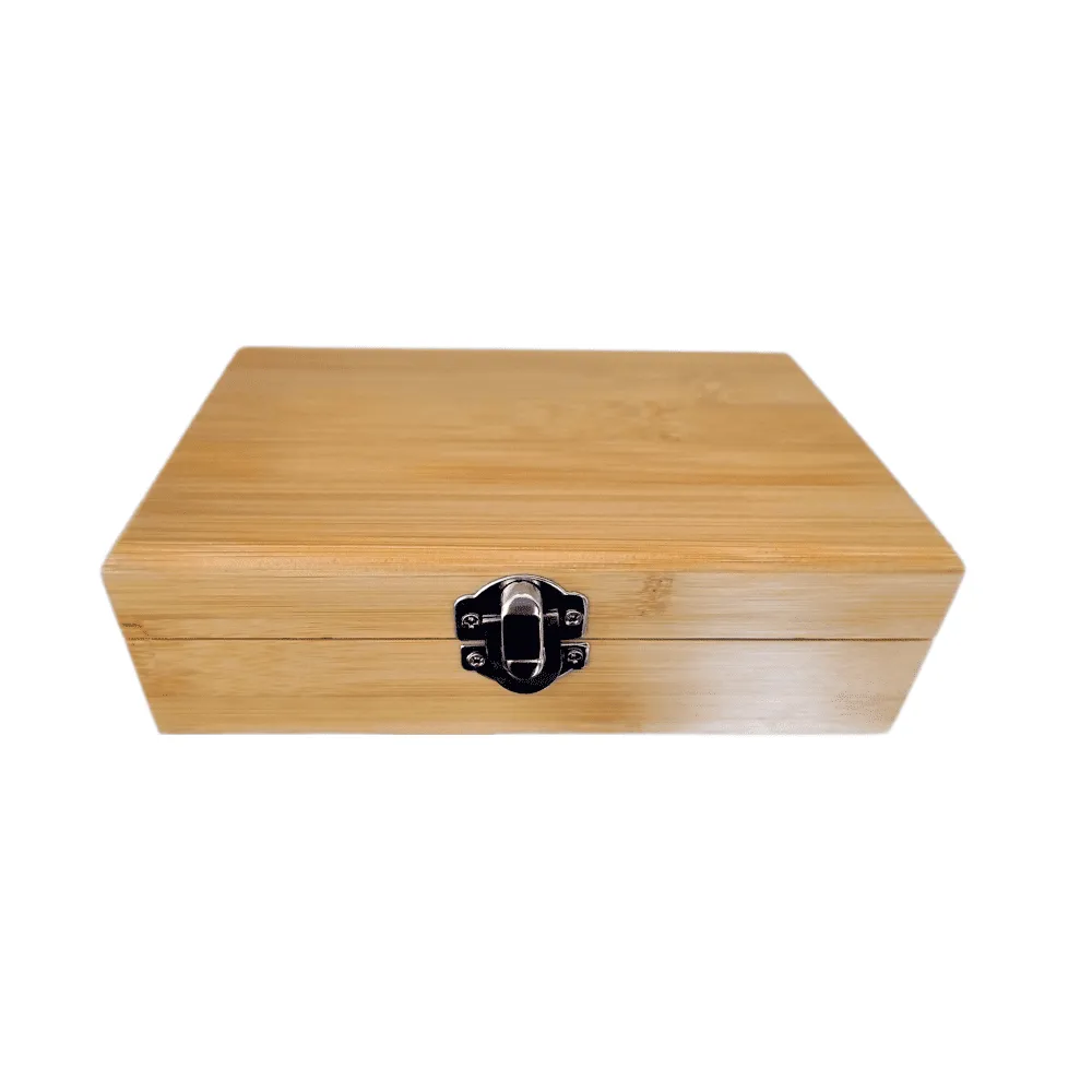 Contiene un sacacorchos de acero inoxidable y mango de madera, aro corta gota y tapón con detalle en madera. Estuche en madera con cierre metálico. Caja contenedora de cartón blanco.