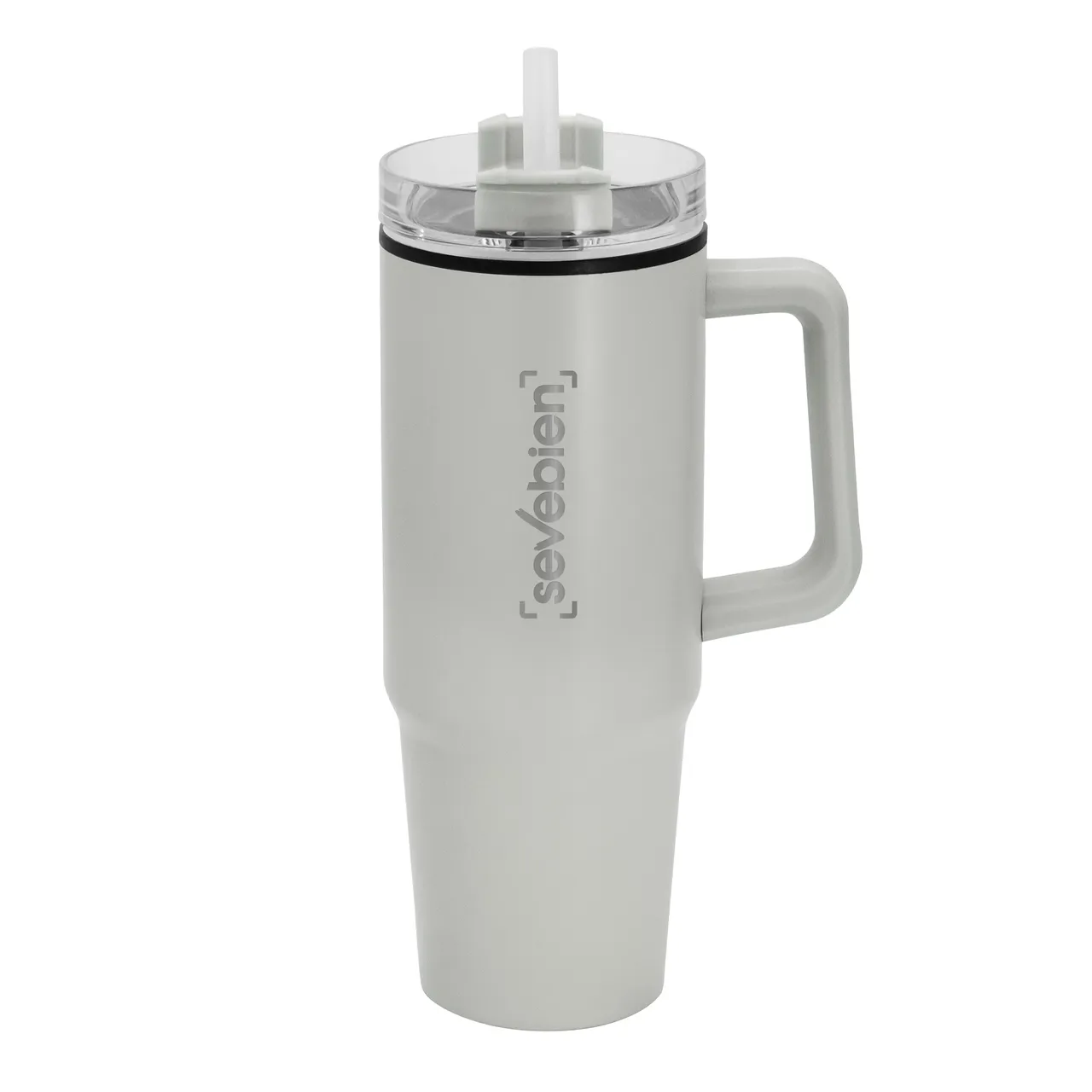 El acompañante ideal para cualquier ocasión. Mug doble pared con sorbete. Interior de plástico PP y exterior de acero 201. Tapa plástica transparente a rosca con anillo de silicona. Cierre giratorio porta sorbete. Sorbete plástico translucido. Pintura exterior con acabado mate. Mantiene las bebidas frías y calientes por más tiempo. Medidas: Ø 8,8 cm x 24 cm.