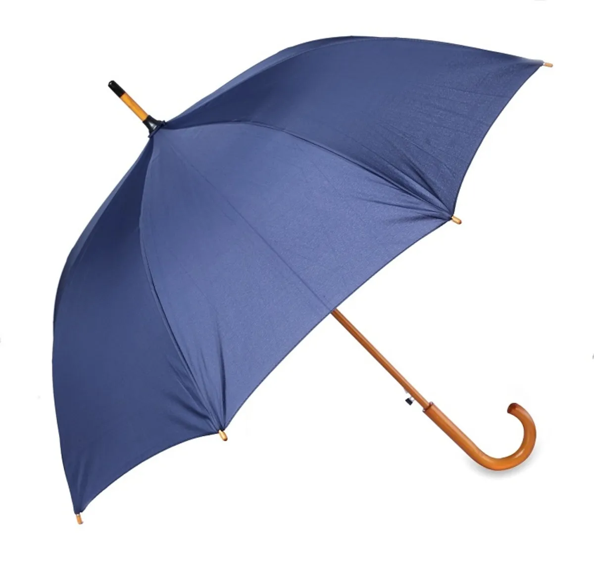 Estructura: mango de madera en forma de J de apertura automática, estructura metálica y varillas de fibra de vidrio.