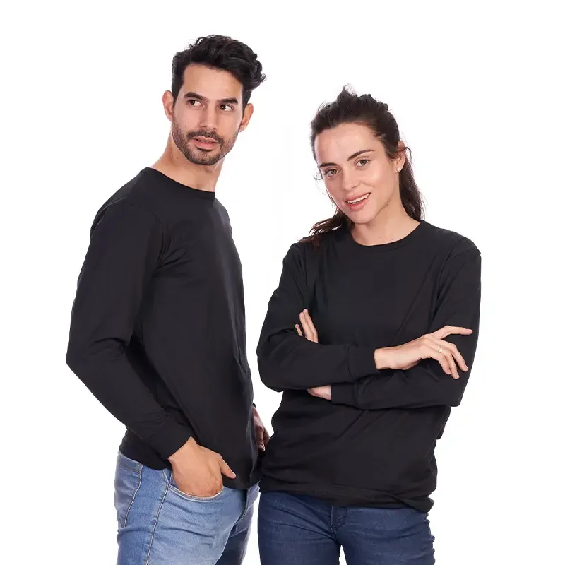 Remera de manga larga unisex en corte slim fit, con cuello redondo y puño de ribb de algodón. Esta prenda está confeccionada 100% en algodón 24/1 peinado, un recurso ecológico renovable y sostenible. Ella mide 1.68m, pesa 60 kilos y está usando talle M. Él mide 1.88m y está usando talle L. Recomendaciones de uso para cuidar tu prenda: Lavar a máquina a 30°. No Blanquear. No secar en máquina. Planchar suavemente, evitando el área estampada. ReUseMe.