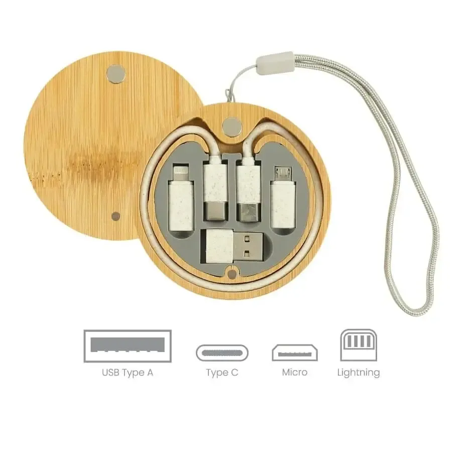 Este set combina tecnología y compromiso ambiental en un accesorio compacto ideal para el día a día, viajes o regalos corporativos. Su estructura de bambú natural, material renovable y biodegradable, reemplaza los plásticos convencionales sin perder durabilidad ni estilo.