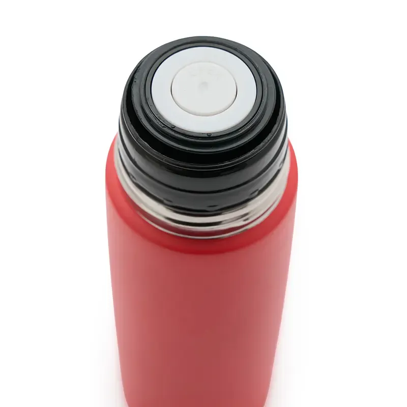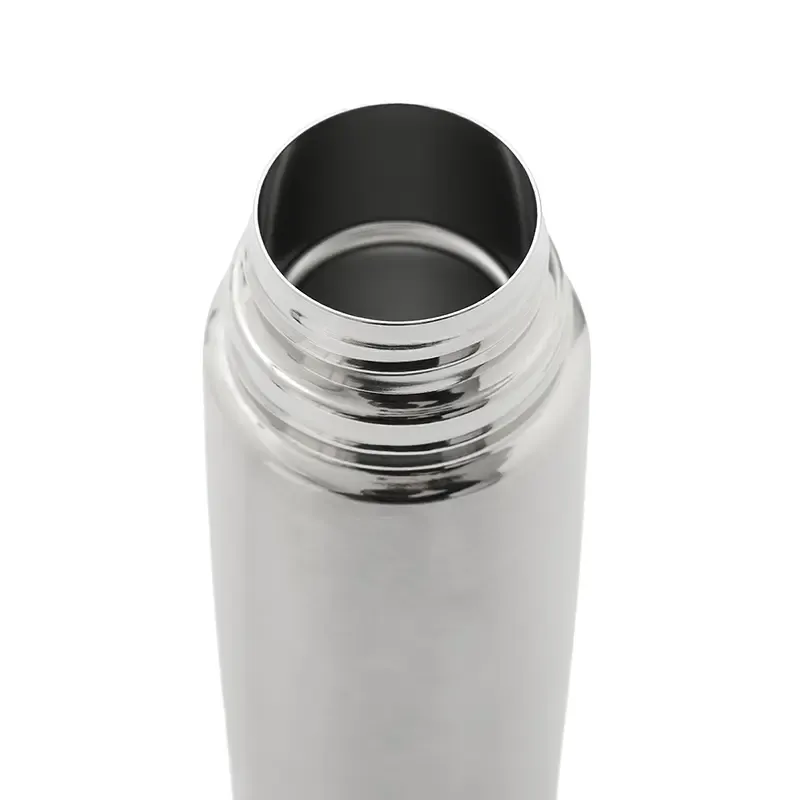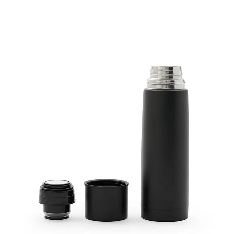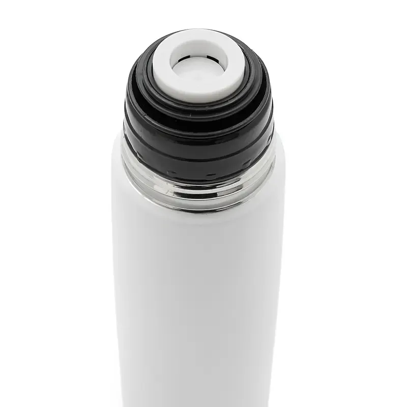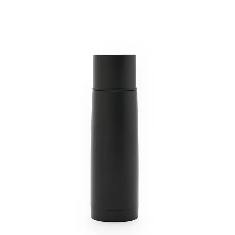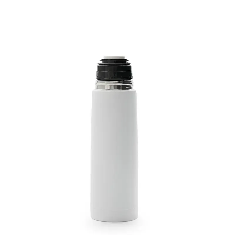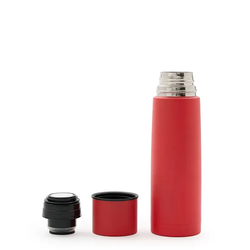 Realizado en acero inoxidable 304. Esmalte especial protector. Su diseño y materiales logran un termo liviano, de gran resistencia y conservación. Producto aprobado por el I.N.A.L. para el contacto con alimentos. Medidas: 23,5 x 6,8 cm. Capacidad: 500 ml. Producto libre de BPA. Tahg