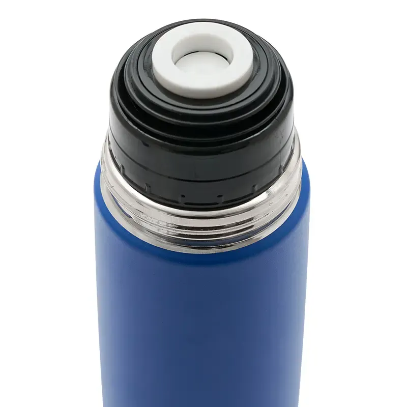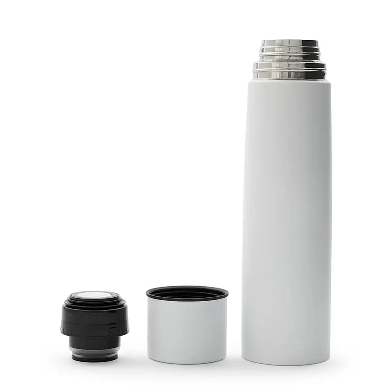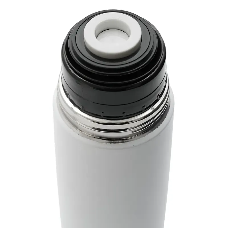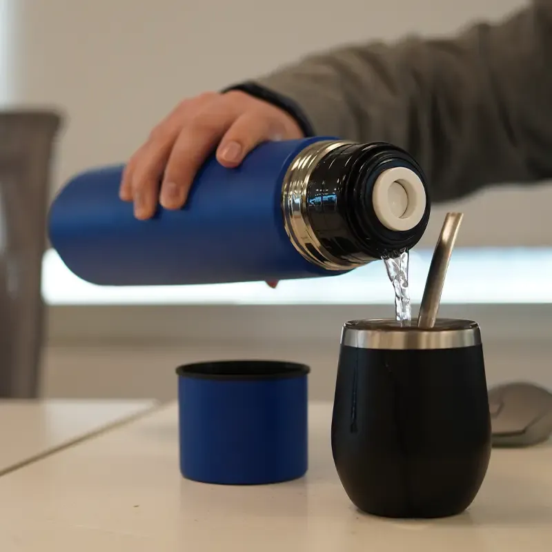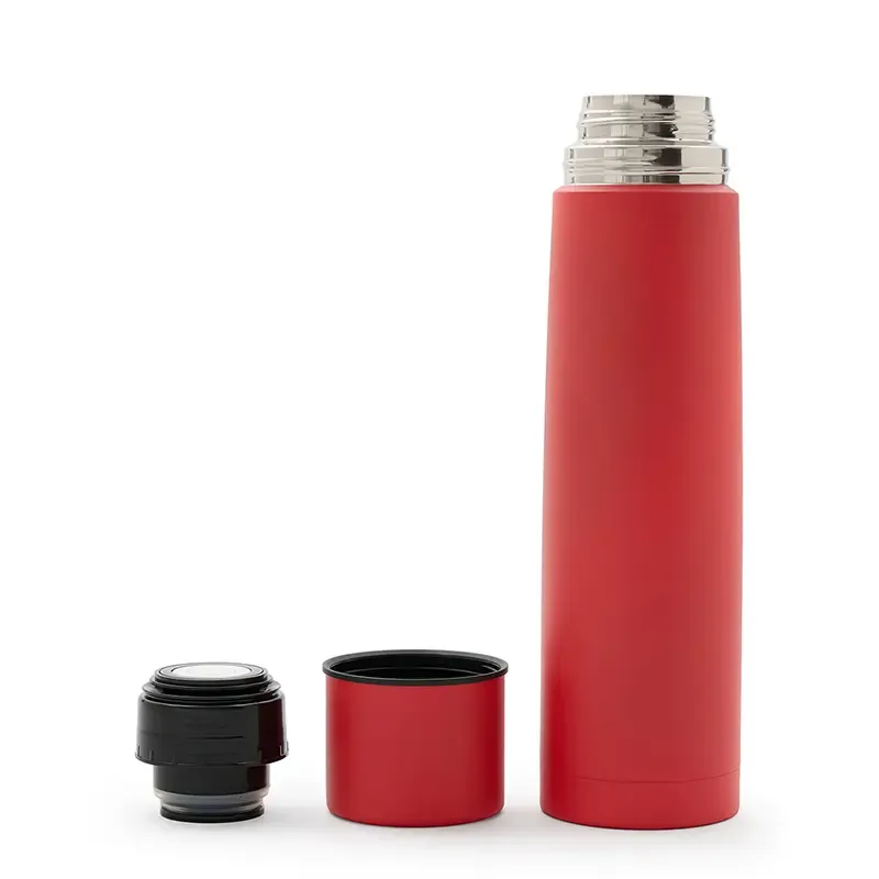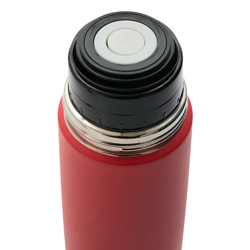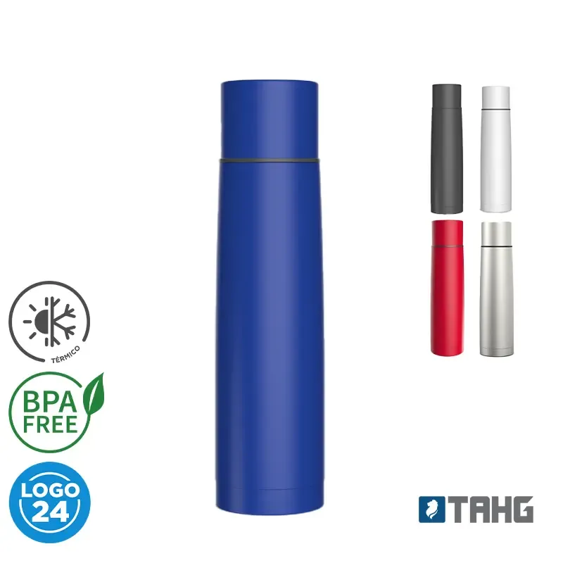 Termo realizado en acero inoxidable 304 con esmalte especial protector. Producto aprobado por el I.N.A.L. para el contacto con alimentos. Colores disponibles: Gris, Blanco, Negro, Rojo, Azul. Medidas: 32 cm x diámetro 8,3 cm. Capacidad: 1 Lt. Producto libre de BPA. Tahg.