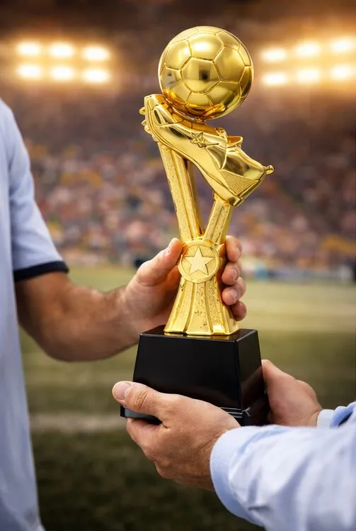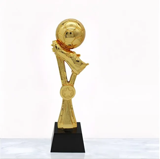 Fabricado en plástico de alta calidad con terminación brillante, presenta un diseño estilizado que incorpora un balón y un botín en su estructura, transmitiendo de forma clara la identidad futbolera del trofeo. Su estética vertical y contemporánea lo convierte en una excelente elección para torneos, ligas y competencias de todo tipo.