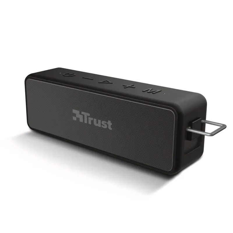 Tamaño portátil,perfecto para viajes – Potente sonido estéreo rico en matices para cautivar a todos sus amigos(20 W RMS) – Se pueden vincular dos altavoces de forma inalámbrica para dar vida a la fiesta – Ideal para laspistas de esquí o la piscinaresistente al agua (IPX7) – Reproducción de hasta 15 horas sin necesidad de recargas -Cargue el altavoz rápidamente al 100 % en solo 2 horas (se necesita un cargador de pared USB de 10 W) – Sepueden hacer llamadas de teléfono con el micrófono incorporado.Viaja con músicaCon un tamaño compacto y una calidad de sonido espectacular,el altavoz Bluetooth Axxy de Trust es ideal parallevar la fiesta contigo,independientemente de adónde vayas Con una batería de larga duración y resistencia a lasinclemencias meteorológicas,el altavoz mantendrá la fiesta en marcha.La fiesta va contigoNo dejes que el tamaño compacto del altavoz te engañecuenta con un impresionante pico de salida de 40 W (20W RMS),lo que significa que podrás llevar contigo un potente sonido rico en matices adonde quiera que vayas.¿Quieres todavía más potenciaConecta dos altavoces de forma inalámbrica para darle más marcha a la fiesta.Resistente al aguaNo tengas miedo de trasladar el altavoz al exterior Gracias a su resistencia al agua (IPX7),es perfecto para usaren cualquier condición climatológica No importa si vas de camping,a hacer senderismo o a organizar una fiestatropical en la piscinael Axxy se encarga de la música.Amplía tus listas de reproducciónEs hora de empezar a crear una lista de reproducción monstruosamente larga Con hasta 15 horas de tiempo dereproducción con una sola carga,tendrás tiempo para reproducir tus temas favoritos y te sobrará para atenderpeticiones de canciones.Listo para másDespués de una fiesta,seguramente el Axxy se recargará más rápidamente que tú En tan solo dos horas,elaltavoz volverá a estar completamente cargado*,y listo para comenzar con la siguiente lista de reproducción.* Se requiere cargador USB de 10 WLlamadas de manos libresPero todavía hay más Conecta el smartphone al altavoz Bluetooth y el micrófono integrado te permitirá realizarllamadas de teléfono de manos libres